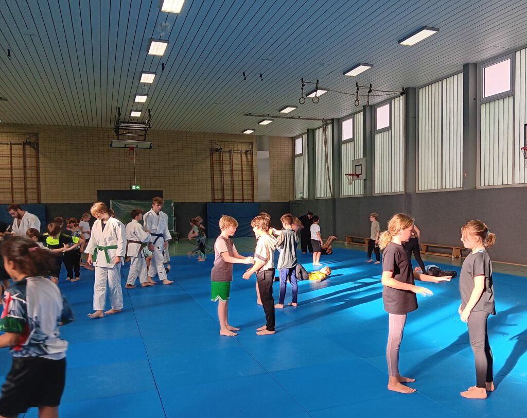 Am 04. und 05.11.24 jeweils vormittags fand in der Halle Am Eichelkamp der diesjährige „Tag des Judo“ statt. Mit ca. 200 Schülerinnen und Schülern des Siegtalgymnasiums und der Mosaik-Schule war die vom Eitorfer Judo Club ausgerichtete Veranstaltung für alle Beteiligten ein großer Erfolg. Das diesjährige Programm richtete sich an die Klassenstufe 4 der Mosaikschule und die Klassenstufe 5 des Siegtalgymnasiums und wurde vom bewährten Trainerteam des Judoclubs durchgeführt.